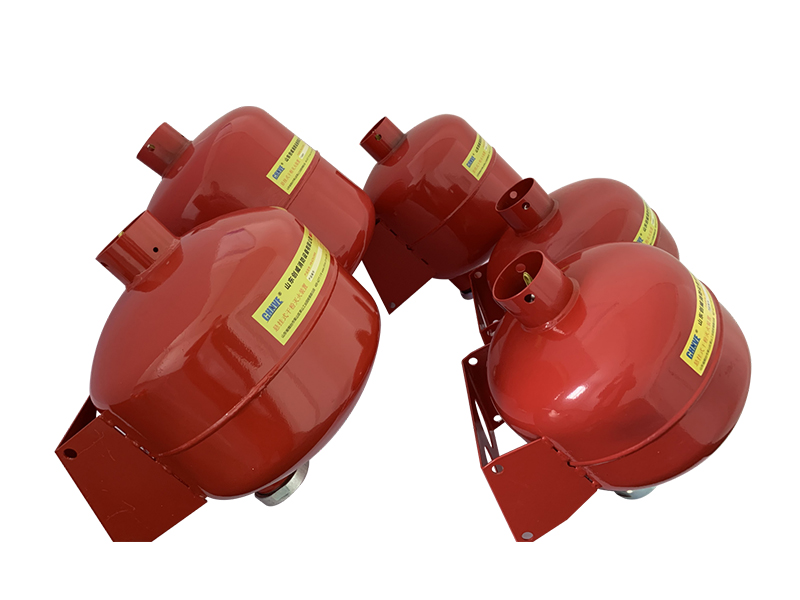 干粉灭火装置固定悬挂安装在保护区域内,它能够通过温感和烟感或红紫外线传感器自动探测点引发启动或控制手动启动。